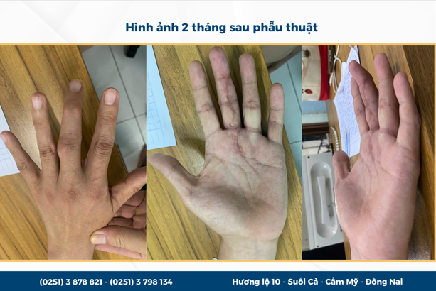 Ca phẫu thuật diễn ra thuận lợi, ngay sau mổ tình trạng co rút được giải phóng tức thì, các ngón tay bắt đầu cử động trở lại. Sau gần 2 tháng hậu phẫu, bệnh nhân phục hồi tốt, vận động linh hoạt, có thể gấp duỗi các ngón tay dễ dàng hơn và trở lại công việc, sinh hoạt thường ngày.